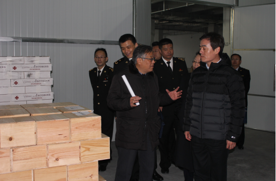 副省長田錦塵一行實地視察了青海曹家堡保稅物流中心卡口、保稅倉庫進口葡萄酒恒溫庫、辦事大廳、視頻監控中心等基礎設施建設情況。期間,省物產集團總經理、臨空開投公司董事長王玉輝向田錦塵副省長一行詳細匯報了青海曹家堡保稅物流中心項目規劃建設、項目驗收、封關運營、業務模式等基本情況。